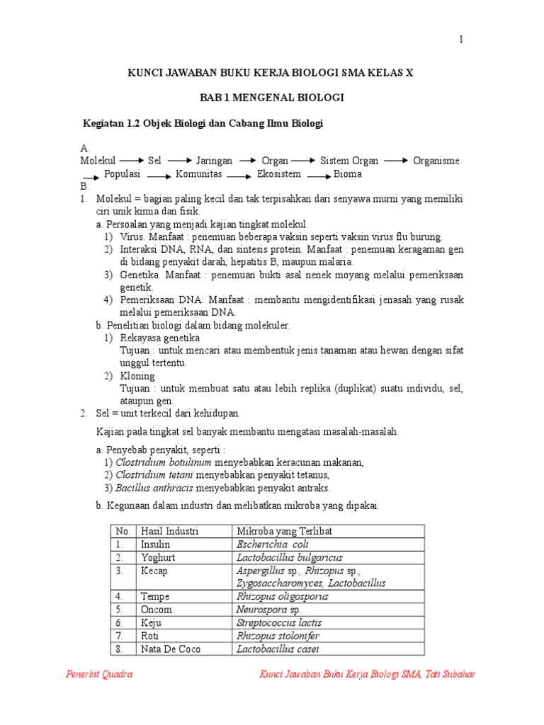 11+ Kunci Jawaban Biologi Kelas X