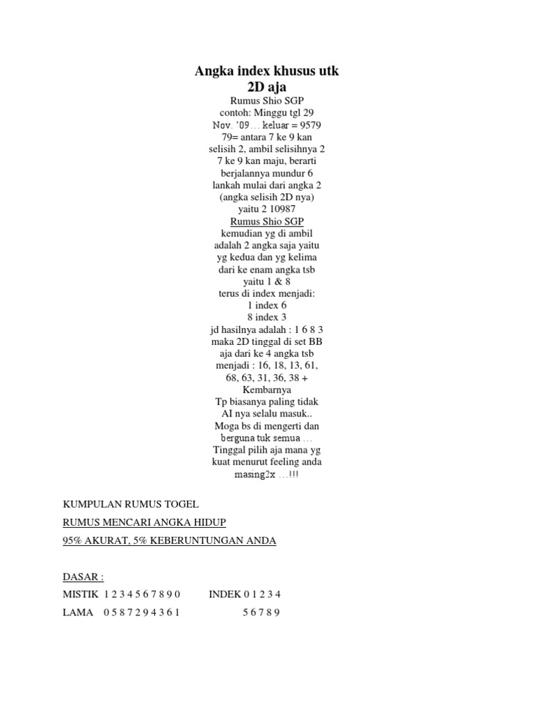 29% menang berapapun kami bayar!!! Rumus abadi sidney twin abadi minimal 1 minggu tembus 1 kali. 29% menang berapapun kami bayar!!! Ini adalah kabar bagus untuk anda. Rumus ekor mati dalam togel. Apakah anda seorang yang hobbi dengan permainan togel? Simak informasi dibawah ini dengan teliti supaya. Untuk mencari angka ekor yang mati anda tinggal mencari jumlah tesson 2. Bandar online terbaik dan terpercaya + alternatif hometogel + daftar hometogel deposit. Rumus angka mati mingguan episode i. Misal hari ini keluar 9470 pada periode ini berarti nomor 2d nya adalah 70.