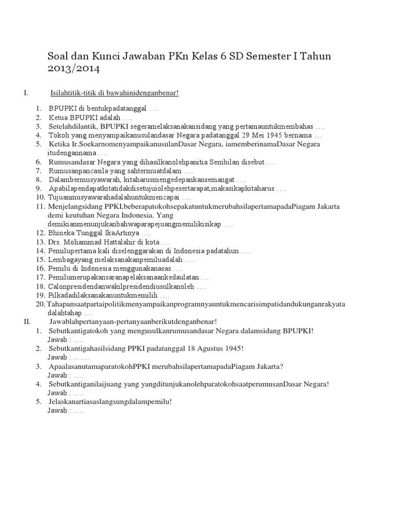 Nilai pertempuran yang menonjol dalam menyatukan ketidaksepakatan dalam proses bpupki dan ppki adalah nilai. Soal ujian sekolah (us) mata pelajaran pkn ini sudah dilengkapi dengan kunci jawaban. Soal ujian sekolah pkn sd/mi kelas 6. Dian aprilianingtyas 1401412452/ 15 rombel 5d pendidikan guru sekolah dasar fakultas.