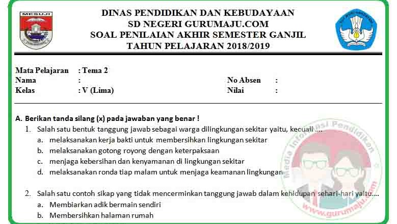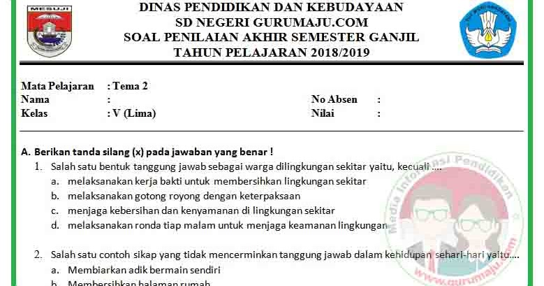 48+ Soal Uas Tema 2 Kelas 5 2021 2022 2023 Images. Hai sahabat buku paket semua, hari ini kami bagikan video pembelajaran latihan soal tematik kelas 2 sd/mi tema 5 subtema 2 mengenai pengalamanku di sekolah. Soal uas pai smp kelas 7 semester 1 2019 k13 revisi.