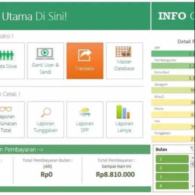 Aplikasi pembayaran ini sangat bermanfaat untuk membantu dalam pelayanan pembayaran siswa ke sekolah. Rekam transaksi pembayaran bag 10. Aplikasi keuangan sekolah format excel. Tujuan software pembayaran spp sekolah. Anda bisa download gratis software tersebut untuk trialnya di akhir postingan ini.