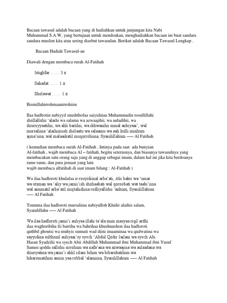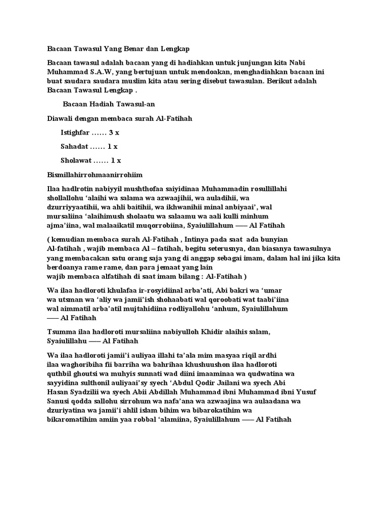 Tawasul Bacaan Tawasul Yang Benar Dan Lengkap from imgv2-2-f.scribdassets.com