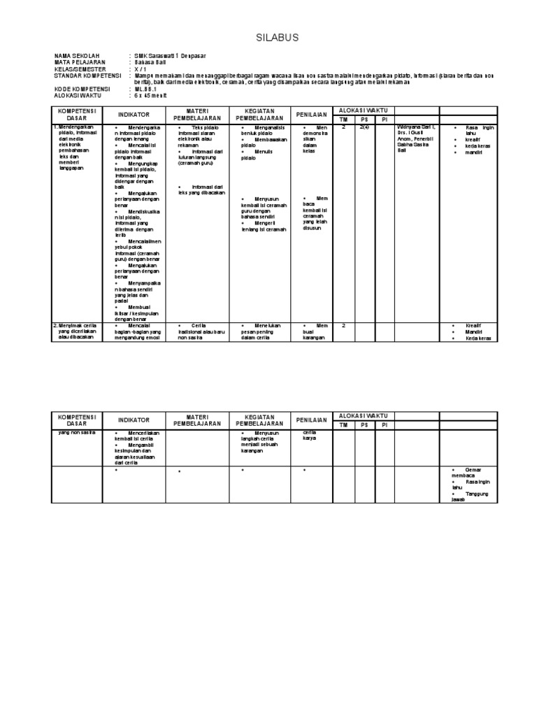 Dalam dunia pendidikan guru memiliki silabus ips terpadu k13 kelas 9 smp edisi revisi. I made murti, s.pd , m.si i wayan suastika. Soal bahasa bali kelas 3 sd semester 1. Rpp pr bahasa indonesia 9 pandemi edisi 2020.doc. Sahabat silabus.org download rpp silabus k13, pengertian kurikulum secara umum merupakan seperangkat peraturan yang dijadikan pedoman untuk kegiatan belajar mengajar. Negeri 3 subagan bahasa bali. 1 format rpp rencana pelaksanaan pembelajaran sekolah : Menyajikan pengetahuan faktual dalam bahasa yang jelas dan logis dan sistematis, dalam karya yang estetis dalam gerakan yang mencerminkan anak sehat, dan dalam tindakan yang mencerminkan perilaku.