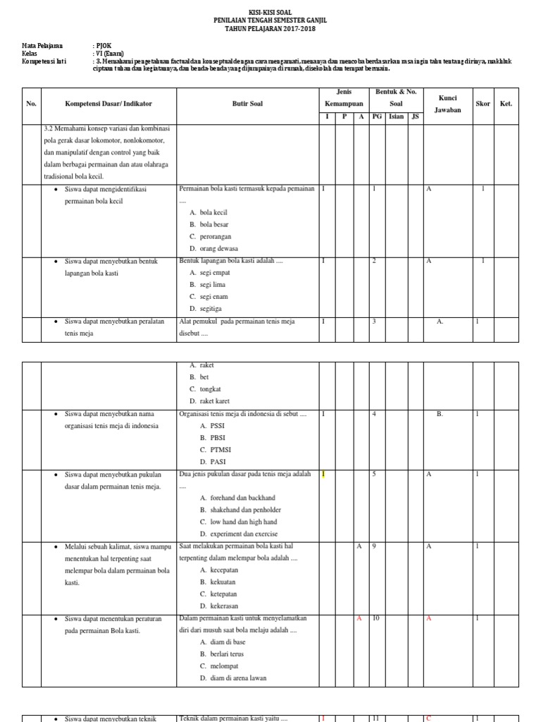 Baca juga soal uts kelas 1 sd semester 2 kurikulum 2013 revisi 2017. Contoh soal ukk pjok penjas kelas 3 sd ini sudah berdasarkan dengan kisi kisi kurikulum 2013 maupun ktsp 2006 sebagai bahan acuan untuk menghadapi ulangan kenaikan kelas semester 2 tahun ini dan telah dilengkapi dengan kunci jawaban dan sudah disediakan link download pdf soal ukk sbk kelas 3 sd mi. Soal yang akan dibagikan ini dilengkapi dengan kunci jawaban, sehigga sangat memudahkan pekerjaan bapak/ibu guru untuk memeriksa pekerjaan siswanya. Terpenting tentu saja soal pts pjok kelas 5 semester 2 ini sudah sesuai dengan pembuatan soal hots, berhubung jumlah pertanyaan pada soal latihan ini cukup banyak maka anda bisa mengubahnya (mengurangi) sesuai kebutuhan. Format kisi kisi soal k13 revisi 2019 untuk sd smp sma guraruguraru. Kompetensi dasar kelas materi indikator soal kognitif soal soal 1 3.5. Dirgantara wicaksono m.pd) pembahasan soal hots pjok cpns pppk sd smp sma Langkah menyusun kisi kisi soal hots untuk smp mts.