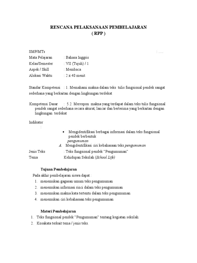 Contoh Rpp Bahasa Inggris Sma Kelas Xi Semester 1 Reading Skill Ktsp from www.kuliahbahasainggris.com