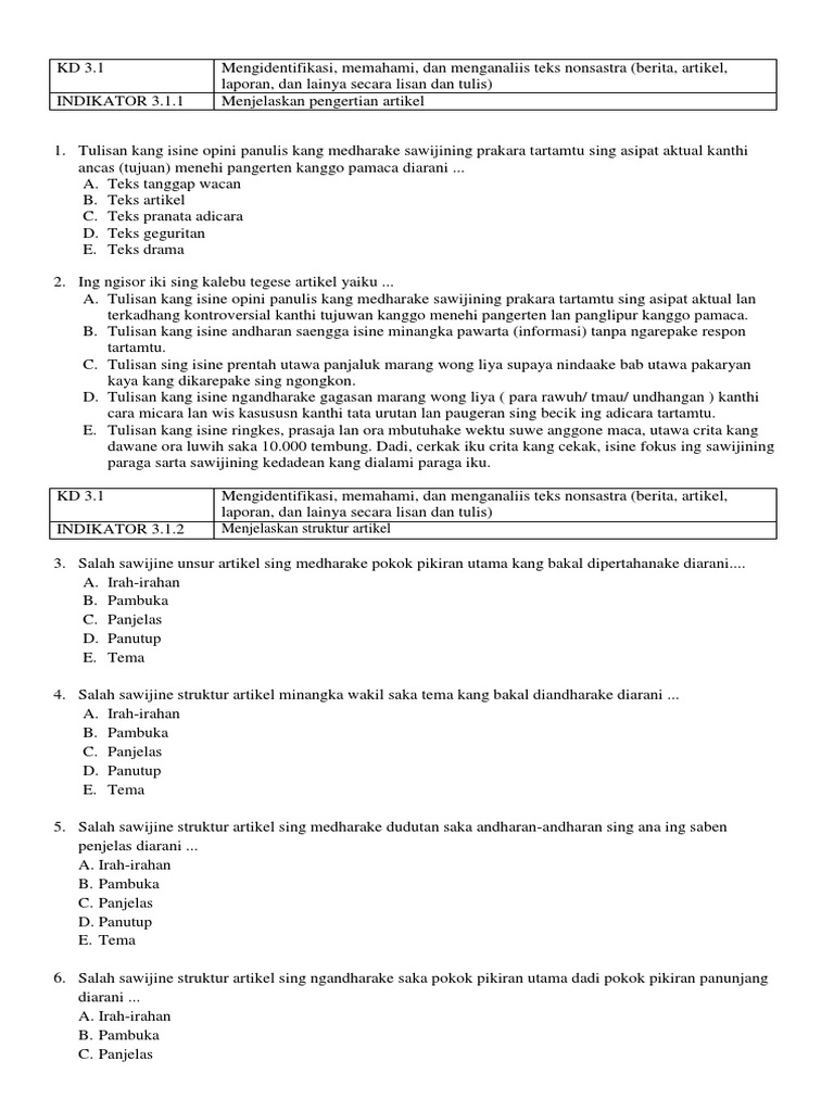 Raden tetuko wau ta, satriya ing pringgodani kang. Bisa nggawe pamaca kaya kaya ngrasakake lan weruh dhewe c. Karangan ing ngisor iki wacanen sing patitis, banjur wangsulana pitakon ing ngisore supaya luwih mudheng isine wacan! Ing kabudayan jawa tembung bagus biasane digunakake dadi sesebutan putra kang durung palakrama utawa kang yuswane isih timur. Download xhtml redact kanggo ndeleng langsung utawa ngirim link menyang email.