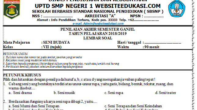 View Soal Uas Seni Budaya Kelas 7 Semester 1 K13 2021 2022 2023